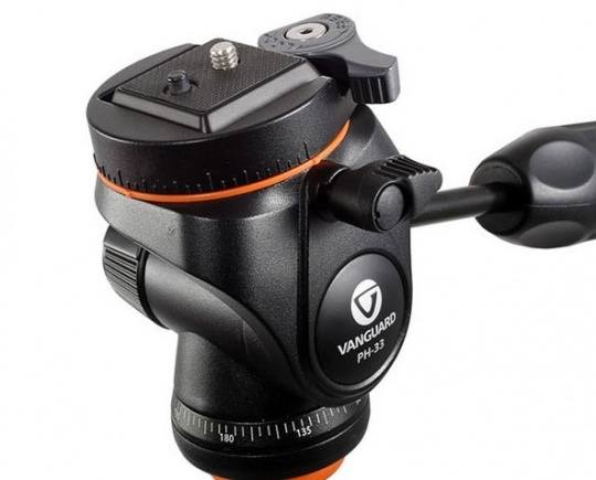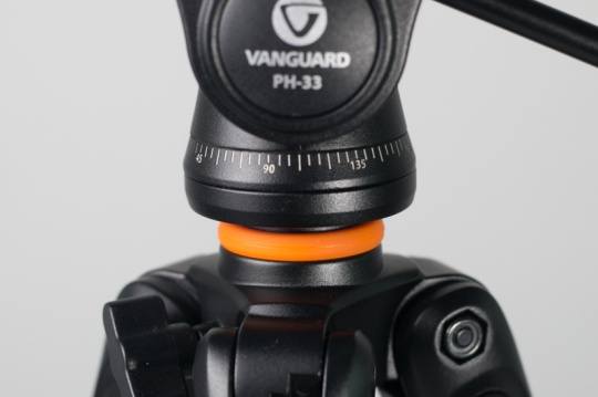 脚架搭配的三维摄影云台PH-33,整个云台和快装板下方的基座均有清晰的刻度标识,而且均可以双向360度旋转,这一设计给使用者对360度全景拍摄或视频跟拍提供不错的硬件支持。
