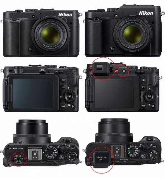从规格对比来看,尼康COOLPIX P7800的升级并不多,图像传感器、影像处理器、镜头均未改变,机身内置了电子取景器、屏幕改成RGBW排列、配件支持WU-1a和WR-R10/WR-T10。我们可以将尼康COOLPIX P7800视为COOLPIX P7700电子取景器版。