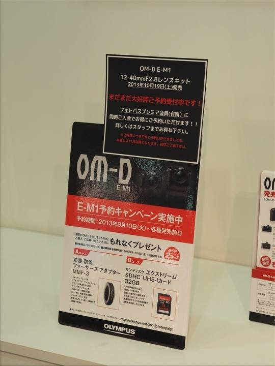 本来奥巴的展室是周日及节日休息的,但是为了配合E-M1的上市宣传,展室从9月22号到10月27号无休息不间断营业,方便广大影友前去试机体验。而且,对于现在预订E-M1的用户,还可以免费得到MMF-3镜头转接环,或者SanDisk的32G传输速率为每秒45MB的SD卡。