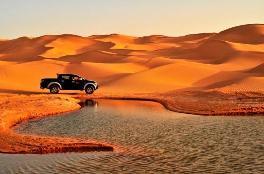 即便深入沙漠,手中的相机依然十分可靠。深入沙漠深处,行至沙漠中的一片绿洲旁补给,碰巧有一辆越野车遭遇“陷车”。借助一片偏振镜和一片中灰渐变镜我将眼前的美丽景象完美地记录了下来,在黄昏的光影勾勒之下,撒哈拉沙漠显得格外美丽。