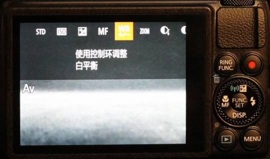 这台S120最吸引笔者的地方就是在于它拥有一个手动控制环,这个控制环设置在镜头上,通过转动这个环可以快速进行参数的调节。相当于一个前拨轮的作用。在相机后背专门有一个“Ring FUNC”的控制环菜单,进入这个菜案里面就是手动控制环能够设定的所有参数选项了。包括了常用的ISO,曝光补偿,手动对焦,白平衡,色彩模式等等。