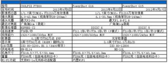 PowerShot G是佳能旗下一个“历史悠久”的经典系列。该系列在PowerShot G15开始有一个较大变化,传感器改采用1210万有效像素CMOS,镜头光圈提升至F1.8-F2.8,操控布局改变,放弃翻转屏改为固定式。性能方面PowerShot G15主推高速对焦、高速连拍。那么时隔一年,PowerShot G16又能给我们带来什么?我们将PowerShot G16与PowerShot G15、尼康COOLPIX P7800规格进行简单对比:
