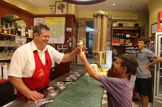 时至今日我依然十分想念ERCOLE 的冰淇淋和店主爽朗的笑声。在那个被意大利猛烈的艳阳晒得快要融化的时候,一头扎进路边的这家小店。各式缤纷色彩的冰淇淋让我彻头彻尾凉快了几分。“来吧,吃个世界上最美味的冰淇淋凉快凉快。”ERCOLE 冰淇淋店在皮佐市可谓无人不知,传了三代人的冰淇淋店依然如故,口味多年来没有任何的改变,这是最为当地人自豪的。他们说只要你尝过这家的冰淇淋你才算真正吃过冰淇淋。胖胖的老板热情地招呼着来店里的每一个人,虽然大多数都是十分熟识的老顾客。胖老板向我展示他做冰淇淋的速度,灵巧地用冰淇淋勺挖出一个又一个彩色的冰淇淋球,浇上巧克力或者榛子碎,不想打搅这样融洽的氛围,我把相机轻轻切换到视频拍摄功能,用手指在触摸屏上进行合焦,镜头迅速对焦,平滑安静地拍摄下这一幕。正拍着,一个小孩子跑来要一个草莓口味的冰淇淋,老板豪爽地用冰淇淋勺在冰淇淋桶中搅拌一番,然后毫不吝啬地涂抹在蛋筒之上,冰淇淋马上如一朵粉色的云随意舒展在蛋筒上。孩子雀跃地想要他的冰淇淋,刚拿住包在蛋筒上的纸带子,胖老板狡黠的一笑,一下抽出冰淇淋,孩子手上只留下一条纸带子,孩子以为冰淇淋掉了惊呼一声后才发现这只是个玩笑。胖老板哈哈大笑着将手中的冰淇淋还给孩子,孩子舔着失而复得的冰淇淋开心地跑开了。站在一旁看着这一切,用手指轻轻触摸液晶显示器,选好合焦位置迅速对焦,用触摸快门拍下让人会心一笑的画面。