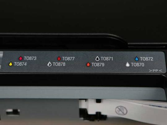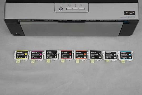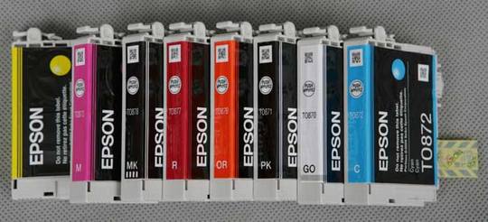 墨水系统:爱普生“世纪虹彩亮光2代”颜料墨水,亮光色(T0870),照片黑(T0871),青色(T0872),洋红色(T0873),黄色(T0874),红色(T0877),粗面黑(T0878),橙色(T0879)
