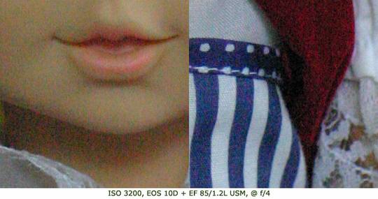 从下面的效果图来看:提高到ISO 800来使用,还是可以接受,ISO 1600和ISO 3200,就已经明显出现斑点了。