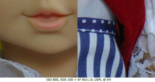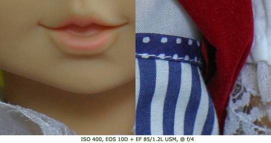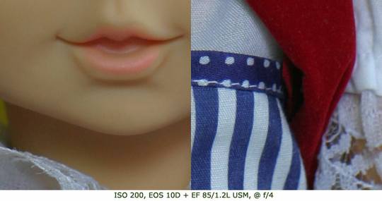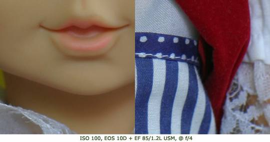 这是一个题外的话题。由于EOS 10D的 CMOS感光面积小于135画幅(1.6x),与135相机采用同样的镜头相比,为了在照片上达到同样的被摄物体尺寸,EOS 10D的物距要远大约1.6倍,因此景深相应增加,背景虚化能力减弱,感觉与135有很大不同。而且,用户根据自己需求和多年经验选择的合理镜头搭配组合,必须重新选择。这可是个不小的缺点。看来今后,一旦与35mm胶片相等的全尺寸DSLR价格降到合理范围内,必将吸引大批摄影爱好者。