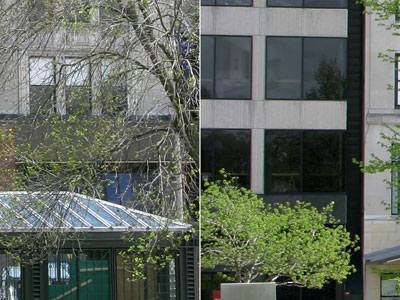 数码相机,尤其是非X3技术的数码相机的一个致命弱点是:对于低反差的远处细节(比如树叶)表现力差,通常糊里糊涂。图2(是图1的中间和边缘部分原图,100%放大)展现EOS 10D的细节分辨能力:35mm,f/8,1/20s。感觉相当不错。