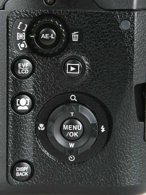下面我们来看看机身背面,相比S9600,S100FS的背面设计更显得利落,左边2.5英寸可翻转LCD屏幕与右边的键盘区域分割明显,搭配的很协调,前代S9600的键盘区域设计的比较松散,对焦区域选择键在EVF取景器旁边,EVF和屏幕取景的切换键也设计的比较靠上。而现在在S100FS上这些功能键都集中在了屏幕的右侧,结构比较完整,回放键、面部识别键、十字键都集中在这里,微距功能、闪光灯模式、自拍等功能都融合在十字键上,因为LCD屏幕尺寸的增加,所以有些功能必须要整合在一起。