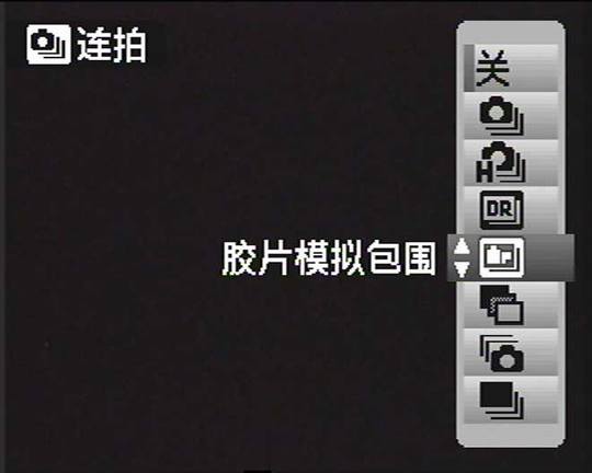 包围曝光模式:胶片模拟包围(Privia、Velvia、ASTIA(柔和))