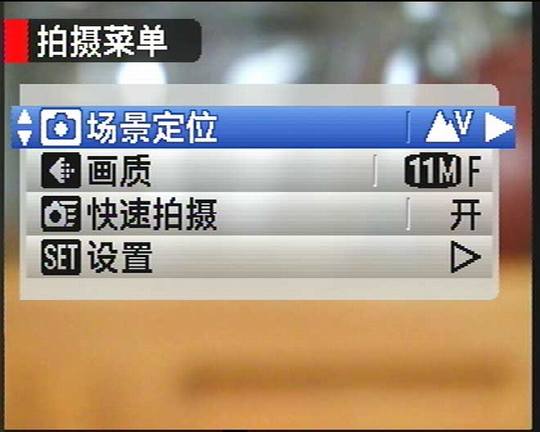 和目前市场上大多数相机一样,S100FS的大部分功能都可以通过菜单来进行调整,但是也有一些其他功能是集合在模式转盘上的,比如在该机上新增加的SP1和SP2选项,这两个选项其实是把一些常用的场景模式归类。其中SP1包括自然光、自然光柔和、自然光锐化和花卉;SP2包括人像、人像柔和、婴孩、美肌、夜景、日落、雪景、海滩、运动和烟火,在这两个界面里,选择不同的场景模式,下面都会有相关的拍摄提示,告诉使用者每种场景模式都适合拍摄何种类型的照片。