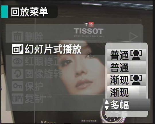 回放功能:脸部优先(带红眼修正)、多画面回放带缩略图功能、裁剪、图像旋转、幻灯片播放、按日期排列、直方图(亮区警告)、语音注释、自动纵横监测