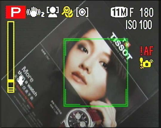 脸部优先也是技术是富士数码相机的看家本领之一,虽然S100FS没有采用最新的脸部优先技术3.0(F100fd采用的是脸部有限技术3.0版本),而是搭载了2.0版本,但是通过对该功能的试用,其性能已经比前代相机有了大幅度提高,即使是45度倾斜甚至水平方向的面孔也可以很容易的识别出来。
