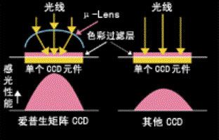 二是微透镜聚光技术(On Chip μ-Lens技术),它可在每个CCD感光元件上方增加一个微透镜(μ-Lens),有效的将光线集中于CCD元件感光性能最佳的中心部位,相当于使矩阵CCD的感光度提高30%。该技术更可大大提升扫描速度。