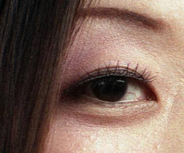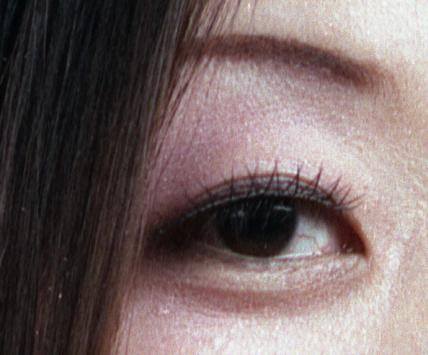 虽然EPSON3200的片夹已经在最大程度上保证了底片的平整性,但是如果底片有弯曲,上夹后还是会有一定程度的弯曲。平扫比底扫最大一点不足是不能自动对焦,但幸运的是其扫描景深也非常大。为了知道扫描景深对扫描的影响,我做了个实验,同一张底片,同样是药膜面朝下(放反可能会因为底片的厚度而影响测试效果),把它直接放在扫描仪的玻璃面上进行48位3200DPI的扫描,眼睛的扫描效果如下: