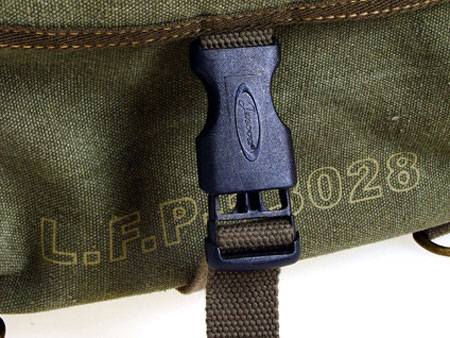L.F.P-13028是一款比较结实耐用的摄影包,其重量是1760克。从外观上看,军绿色布料比较实用。野外的拍摄时候,免不了把摄影包放在地上,这样的颜色不会显得很脏。13028的布料织法是采用一寸九针加密针距的特殊织法完成的,使摄影包更加牢固。表面的材料是用最新科技测试过的拉力材料,质量方面得到了较好的保证。13028的外表面采用了吉尼佛经常采用的超耐磨尼龙防水面料,不仅可以防水耐磨,而且可以防尘、防撞。摄影包的尼龙插扣也比较结实,材料是优质的、可抵抗严寒的全尼龙插扣,即使笔者一次不小心将插扣弯过90度,插扣也没有折断。