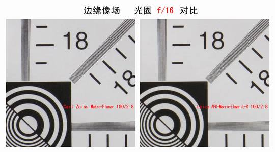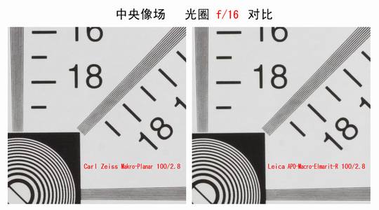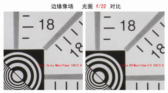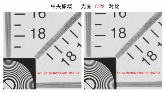 收至光圈f5.6后二镜几乎没有差别;但最小光圈f22时成像有所下降。