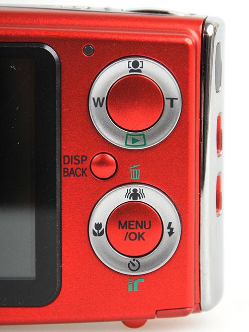 背面的按键与Z10fd完全一样,上下两个十字圆环键,上面的分别是左右变焦杆、上脸部识别键和下回放键;下面的是上面双重防抖键、下面自拍键、左边微距键和邮编的闪光灯键,上下键还可以分别负责删除和打开红外链接功能,而中间是菜单和确定键,两个十字圆环键之间还有个控制屏幕信息显示的按键。