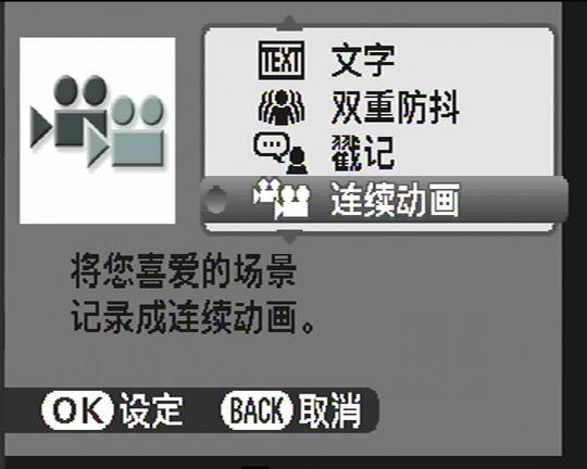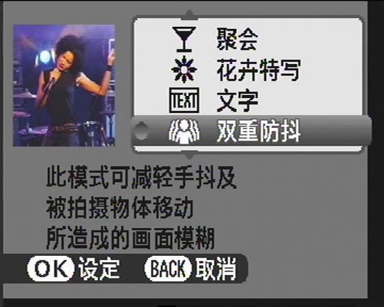 拍摄模式:自动、手动、自然光、自然光+闪光、肖像、风景、运动、夜景、拍卖、日落、雪景、海滩、博物馆、聚会、花卉、文字、双重防抖、连续动画、戳记
