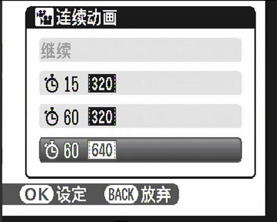 主菜单的最后一项是设置项,在这里可以对图像显示时间、LCD模式、日期时间、音量、声音大小、LCD亮度、语言、背景颜色、拍摄想到显示、视频系统、红外线通信等选项进行设置。