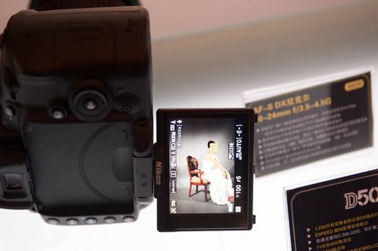尼康首次在单反相机上运用到了可翻转LCD显示屏。如此一来,D5000所具备的实时取景功能得到了二次解放。D5000所采用的液晶旋转显示屏竖直方向可翻转180°,水平方向可旋转270°。对于那些特殊角度我们大可以不再使用极为扭曲又危险的动作去捕捉了。