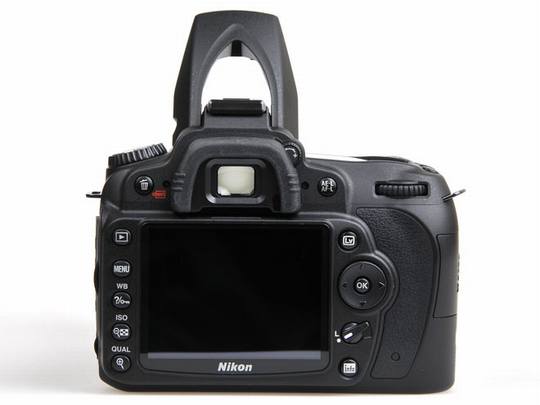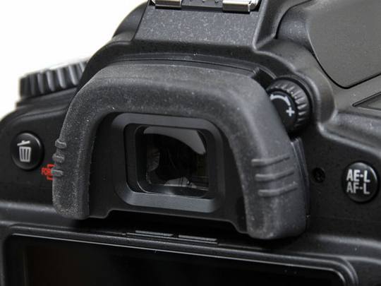 背面按键虽然布局没有太大变化,但是每个按键的设计却完全改变了。取景器两边的按键分别是删除键和AE-L/AF-L键,但是对比一下D80的按键,可以发现这两个按键从以前的接近椭圆的形状变成了现在的圆形,其实不光是这两个按键,屏幕左侧的5个按键也同样变成了圆形,从上到下以此为回放键、菜单键、信息提示/图片保护锁/白平衡调节键、缩小键/感光度调节键和放大键。