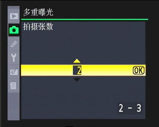 曝光包围:拍摄2或3幅,以1/3、1/2、2/3、1或2 EV为步长调校