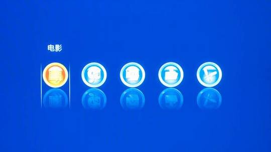 启动电源后大约5秒钟电视出现开机画面,大约40秒钟后可以操作播放器。也许厂家都采用相同的软件开发包(SDK),基于Sigma Design 8635的播放器主菜单都惊人地相似:五个圆形大按钮分别为“电影”、“音乐”、“照片”、“文件”、“设置”。