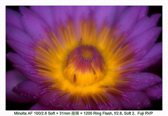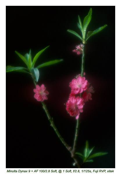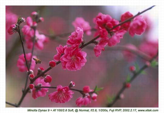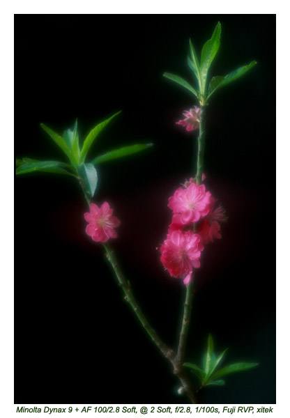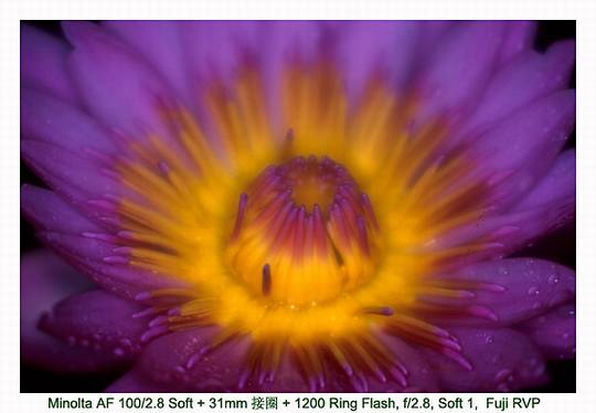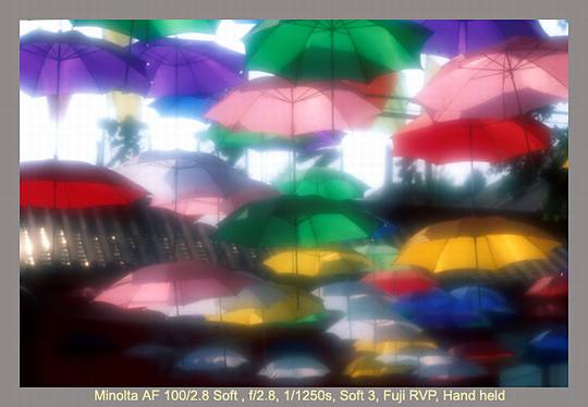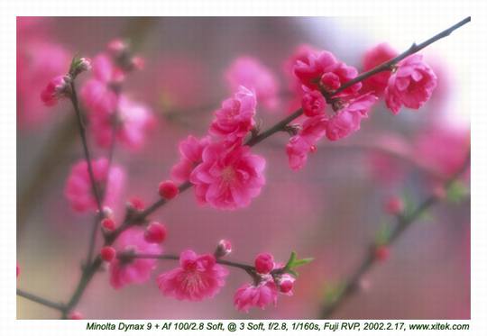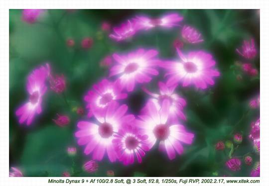AF 100/2.8 Soft则不用加入柔焦滤光镜就可以虚化画面,这种虚化是利用镜头的球差而获得的。在常规摄影镜头中,镜头的球差对画面的清晰度有损害,所以是要极力消除的,但是在柔焦镜头就要利用这些球差,将镜头设计成具有一定量的可孔残余球差,以提供较明显的柔焦效果,也可以说此时的球差是一种“好的”球差。