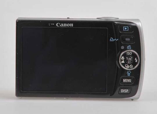 背面的3英寸大屏幕占据了绝大部分空间,加上黑色的面板设计,感觉键盘区设计的比较拥挤。IXUS 860 IS首次采用了3英寸23万像素“晶炫”LCD屏幕,而且佳能也对这块LCD进行了升级,提高了屏幕的对比度和色彩还原,有效减轻屏幕表面反光,也具备防磨和防尘性能。由于大屏幕的试用,光学取景器已经被取消了,这一趋势也是目前大屏幕家用相机的一个特色。旁边的按键布局做了些改动,从上到下的顺序依次是回放键、打印设置键、十字键、菜单键和DISP键。在十字键的中间是FNUC/SET键,在这里可以对拍摄模式(自动和M档)进行选择,还可以对照片格式大小、色彩模式、白平衡、测光模式、曝光补偿等进行调整。