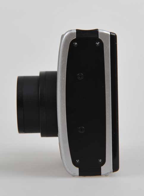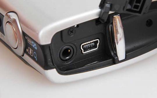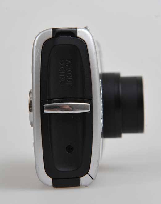 十字键分别可以调整感光度、微距功能、闪光灯和自拍/连拍模式,在菜单键中,可以对自动对焦框、闪光灯模式、防红眼功能、自动ISO偏移等。机身左边是USB接口和视频输出接口,外面是黑色硬塑料保护盖。