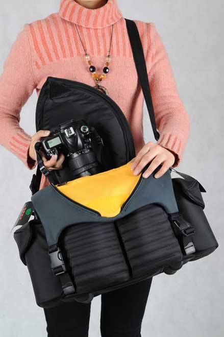 单肩的摄影包是各种类型的摄影包中最经典的一种,由于单肩设计,所以在行动中非常方便取放器材,容量也可以做的很大,所以很多影友在购买摄影包时都会考虑单肩式。这款KATA SB-904也是单肩式设计,这款型号在KATA的单肩摄影包系列中属于中等容量的摄影包,可以容纳两台数码单反和4到6支镜头;SB-902是小号单肩摄影包,可以容纳1到2台数码单反相机和2到3支镜头;而SB-907则是容量最大的一款,可以容纳2到3台数码单反相机和6到8支镜头,同时还配有一个便携式电脑包。这款SB-904的外部尺寸为46×32×26cm,内部尺寸为34×24×22cm,重量为1.5kg。