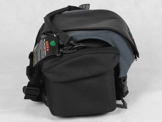 主袋的外盖设计也很有特点,外盖与主袋之间是用卡口固定的,但是外盖的上面还有一个快速拉链系统,两侧的拉链设计可以在不打开外盖的情况下快速的取放器材,该拉链还是双向设计。