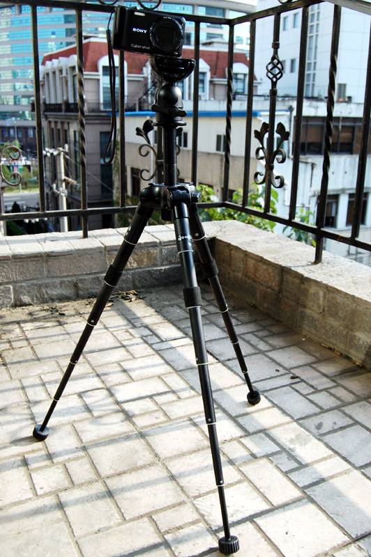 这一特色的最大好处在于可以比较快速地展开三脚架。操作上的便捷为拍摄提供了较多的时间优势,相比于传统的锁定来的便捷。但是需要一定的力气旋开和锁定住。