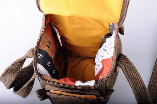 在包的内部,我们又一次看到了非洲特色图案的装饰,这和A2200粗犷的外表形成了鲜明的统一。相机包内部四壁中使用了海绵材质,对器材可以起到不错的保护作用,A2200虽然看着不大,但是内部空间足够放置一台小型单反套机或者是单电产品。