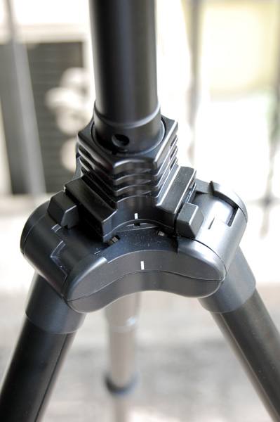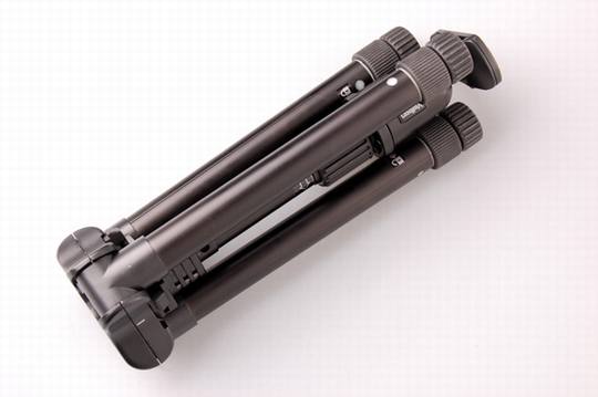 中轴的设计,依然使用了比较少见的2节式设计,巧妙的避开了脚架收缩后中轴部分所占用的空间和有效的利用展开后中轴所起到的支撑效果。