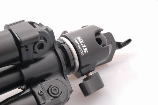脚架采用了螺口式设计,相对比较适合倾斜的坡地。而此次选配的SBH-200DQ云台标配了两个水平仪,对于坡地的水平性应该可以很好的应付,对于不同地理情况下的适应性要强很多。而其底部的橡胶钉可以拆卸,更换合金材质的脚钉。沙地或者其他恶劣条件也可以得到比较好的满足。