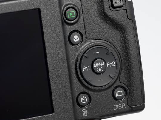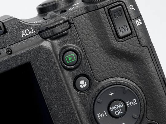 从相机真面,我们似乎看到了某款理光机型的缩影。而从背面观察,熟悉理光的用户可能已经看出,除去顶部的几个键,背面的布局几乎是和理光理光GRD系列如出一辙。