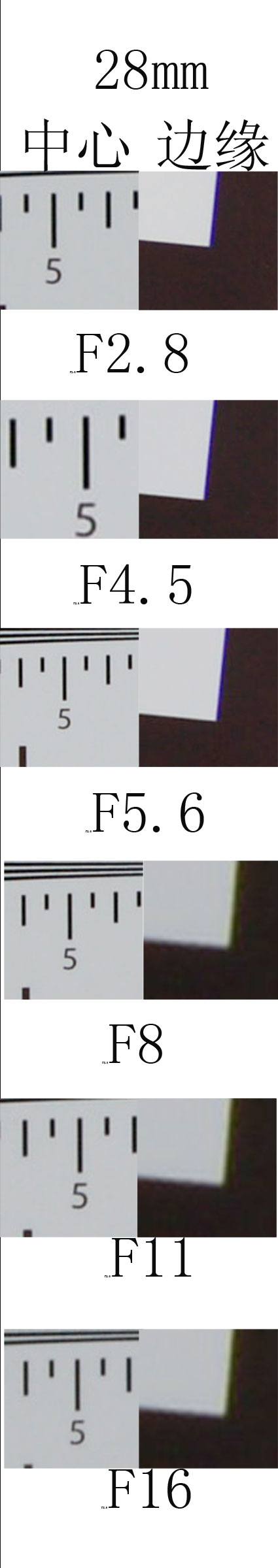 在28mm端到F11时效果比较好。50mm端则明显改善许多。
