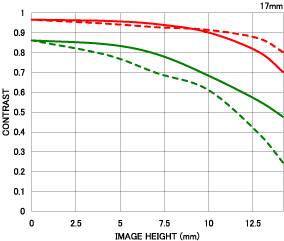 镜头在17mm端有较明显的桶形畸变,35mm和70mm端都程度轻微的枕形畸变,该镜头属于畸变控制得相当出色的镜头。