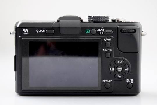 GF1按键设置相对简洁,机顶右侧的快门、电源开关和视频拍摄键。而机背的按键包括独立功能键和自定义键,并不显得杂乱。大小相对适合女士操作。但握持感相对比较舒适。
