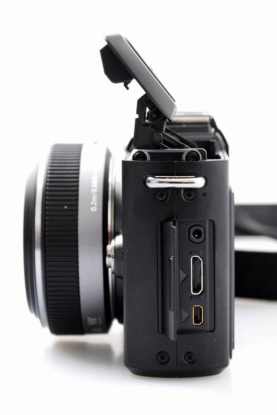 相较于E-P1、E-P2,松下的这款相机在体积上更为小巧。机身顶部配置热靴,与E-P2一样可以外接电子取景器。并配有内置闪光灯。由于这款机型早于E-P2,所以当时多数人认为这款相机的实用性相对来说强于E-P1。在视频拍摄上这款机器更像是一款功能缩减性的GH1,GH1原有的1080P高清视频模式,被缩减为了720p。但无疑这台相机的视频功能要比其他两款高出一筹。