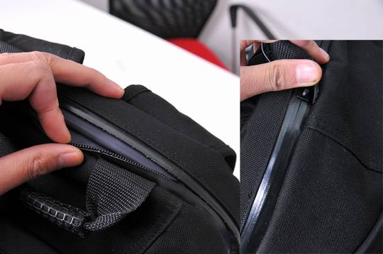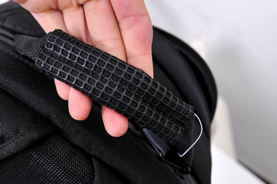 产品本身的质地让这款产品拥有了较好的先天优势,不配备防雨罩显然也就不奇怪了。同时也很好的具备了耐磨性,这或许也和天域的品牌创始人是个户外爱好者不无关系。其实这一点,在很多细节上也有表现。比如说产品拉链,天域使用的ZipClip拉链应该算是业内比较优秀的品牌了。特殊的防水拉链,保证雨水不会通过拉链进入背包。另外,为了增强防护性,这款产品在笔记本仓位、以及侧部取放处,选用的拉链采用了硬质橡胶材料,防水之外也提升了产品的抗压能力。而在主仓位处则是增强了护翼的长度。简单测量了一下宽度差不多在3厘米左右,这要比一般产品长出一倍多。防水的同时也起到了防盗隐蔽的作用。
