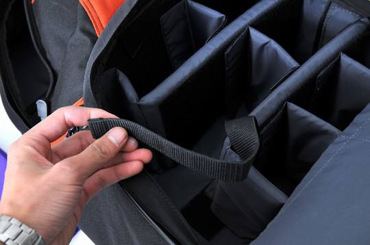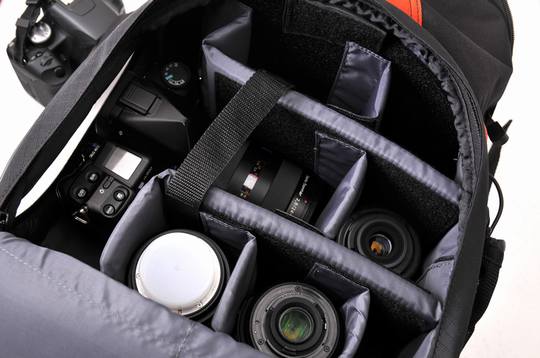 主仓位和杂物仓位都配有内袋,足以应付放置存储卡、充电器这类小物品的需求。