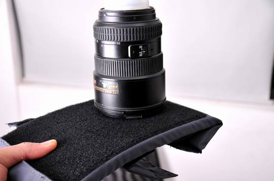 最后再谈谈产品在其他细节之处,我一直觉得天域包的隔护相当硬实。这也保证了相机相对脆弱的镜头不会遭受过大的压力。于是乎小编选择了尼康17-55的数码金广角来进行承重测试。结果出人意料的是在不受保护的情况下,天域3385的隔护足可以负重这款镜头。(镜头自重755g。)
