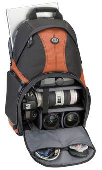 器材仓位比较充裕,诸如α900、D700这类全幅相机外加4款3倍光学变焦镜头、一个闪光灯、测光表应该是绰绰有余的。如果是类似70-200/2.8这类中长焦镜头的话,在另外配备两款变焦镜头空间上还是足够的。
