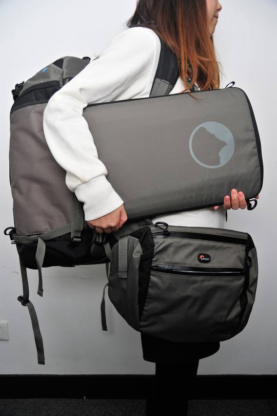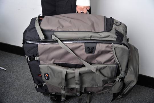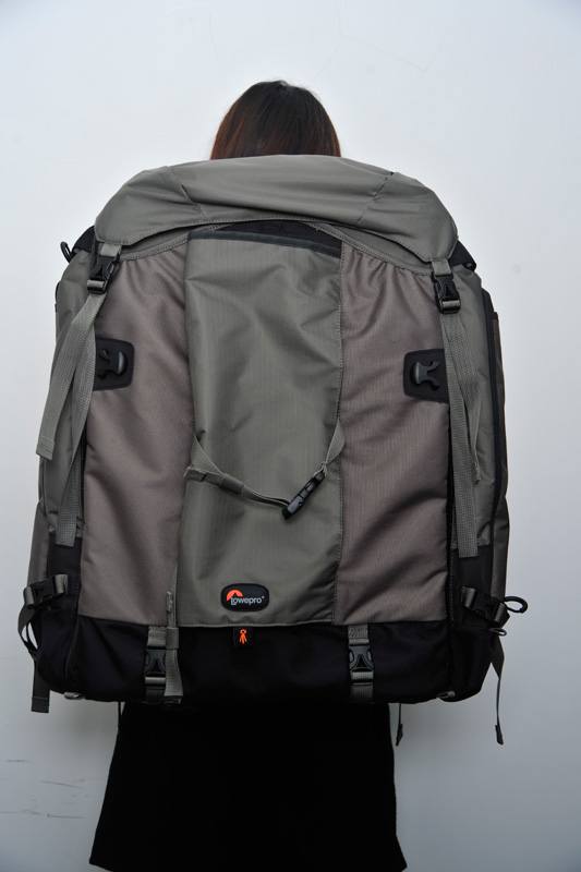 暂且不论这款产品是否适合登山家与户外探险摄影家。作为一款摄影包其器材装载量是用户最关心的。产品内部体积非常之大,尺寸为:37×19×54cm,可放置2-3台专业数码单反相机配镜头(最长600mm/2.8)、5-7支备用镜头、2个闪光灯、附件、个人衣物以及15.4英寸宽屏笔记本电脑。整个摄影包有4个地方可放置三脚架。