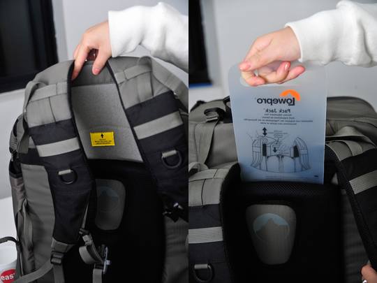从产品本身的主色调上便已经决定了这是一款适合于户外用户的产品。土黄色的主色调,除去耐脏外,也更适合与户外隐蔽。这正如设计者对于这款产品的最初定义:Pro Trekker 600 AW是乐摄宝专为登山家与户外探险摄影家设计的终极户外探险摄影背包中最大的一款,可以背负大量的器材与给养,适合长途旅行使用。它拥有优异的器材保护能力与舒适的背负系统,坚固耐用。并且针对户外运动的需求,特别设计了密封饮水袋与吸管,此外,乐摄宝全天候专利防雨罩、可拆卸顶袋、三脚架套与笔记本包等都是标准配备。