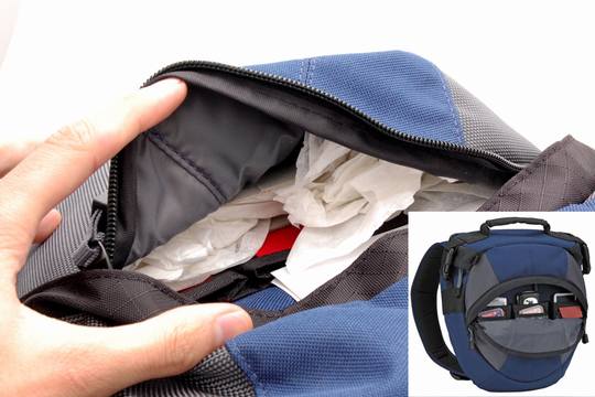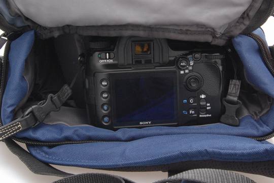 值得一提的是,这款摄影包的容积还是非常不错的。市面上类似这种摄影包,多数情况下只能容纳一机两镜或者一机三镜,大光圈长焦镜头放置多半比较困难。实际测试情况下该款摄影包主体放置5D II或者α900配置小白或者28-75,没有太大问题,余下的空间还可以容纳一到两个定焦头和一个闪光灯。与大型摄影包相比还是有很大差距,但是基本外出拍摄应该可以满足。