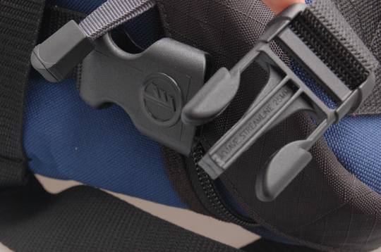 天域5768这款摄影包是一款斜挎包。正如之前开篇所说的这款摄影包的创始者是个户外爱好者,所以这款包在贴合性发挥的非常好。别于有棱有角的设计,实际这款摄影包可以很好的贴在背部和胸前,尤其在骑车爬山时感触较深。另外这款包还在底部加设了腰带设计,能够更好的贴合人体,不至于在快速运动产生人包碰撞的问题。毕竟这种撞击受伤的不仅仅是机器。