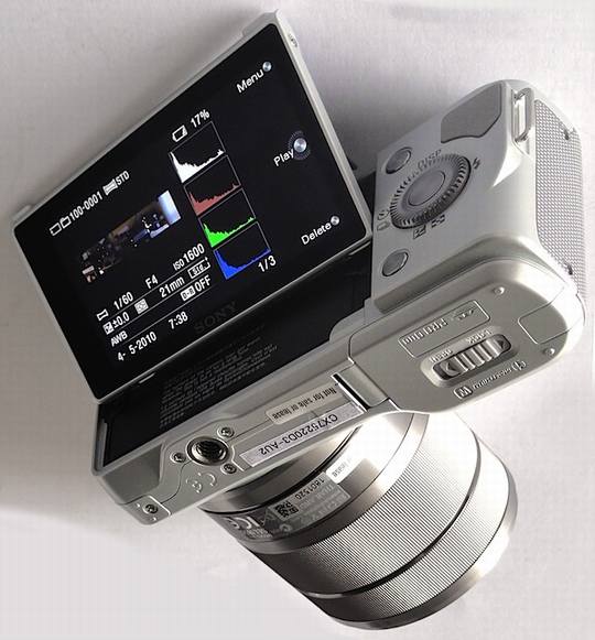 NEX-3和NEX-5都拥有出色的液晶屏,可折叠、90度垂直、约30度的倾斜、明亮、高锐度,大尺寸。